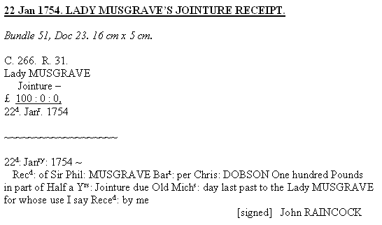 1754 01 22 : Lady MUSGRAVE's jointure receipt